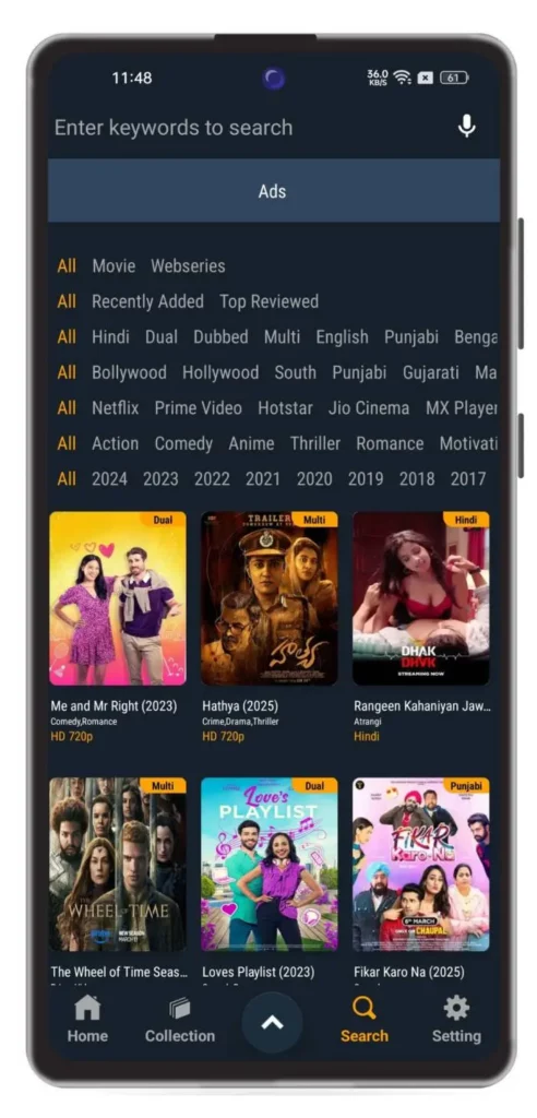 Hunk TV provides a vast content library of unlimited movies, TV shows, and web series. With regular updates, the app ensures a smooth streaming experience and no ad annoyance.